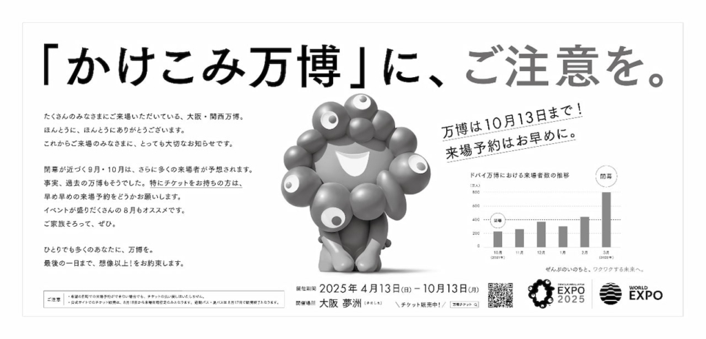「振り返れば、万博を少しでも身近に感じる“道具のような言葉”を心がけてきました。閉幕広告は、その総仕上げです。