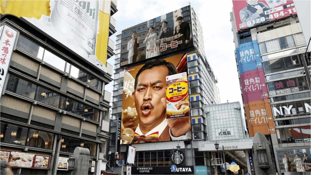 雪印メグミルクは11月1日、「雪印コーヒー」プロジェクト『甘さですべてを受け流せ。』の第2弾として、大阪・道頓堀に大型広告「迫りすぎて受け流せないコーヒィ勝山」を掲出しました。