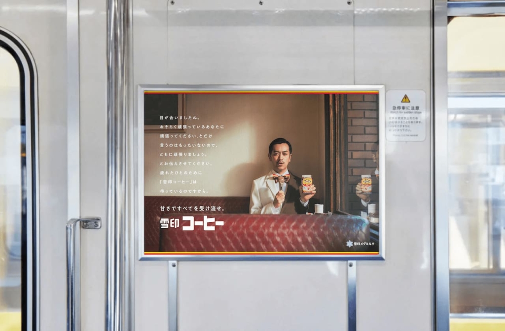 また東京では、大江戸線・三田線・新宿線・京成本線の車内広告として11月から12月まで掲出。中吊りやドア横ポスターで「甘さで受け流す」というメッセージを軽やかに伝えています。