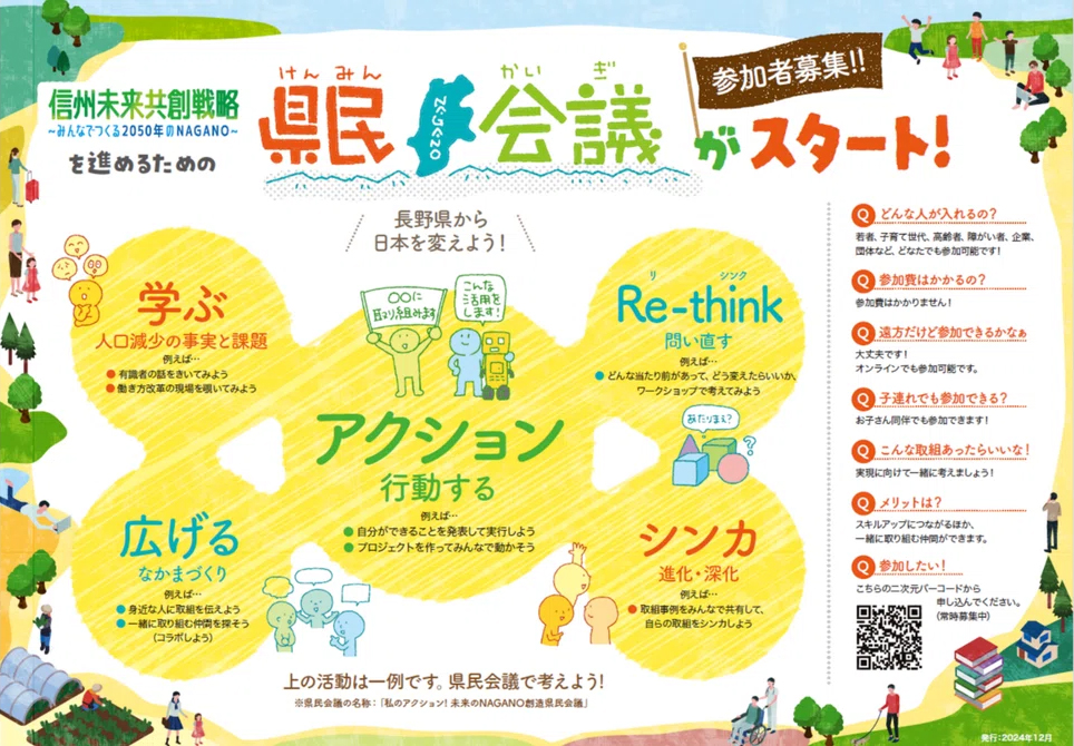 さらに長野県は、2050年を見据えた「信州未来共創戦略」を策定。「若者・女性から選ばれる社会づくり」や「移住・関係人口の増加」など、4つの柱を軸に、各主体が具体的なアクションを進めています。