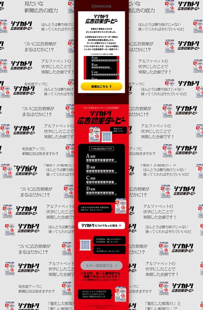 各紙の広告に掲載された二次元コードを読み込むと特設サイトに遷移し、ボタンを押すだけで、その新聞社に1票が入る仕組みです。