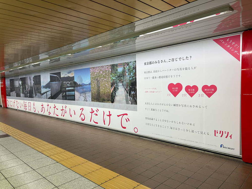 リクルートが発行する結婚情報誌 『ゼクシィ』 は、2月14日のバレンタインデーを前に、1月27日から屋外広告 「なにげない毎日も、あなたがいるだけで。」 を掲出しました。