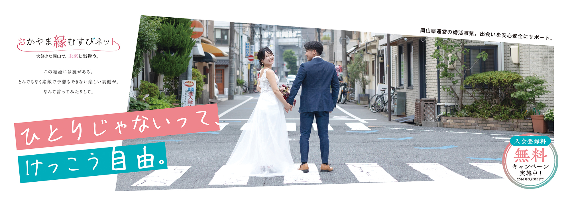 「ひとりじゃないって、けっこう自由。」というコンセプトのもと、結婚は制約ではなく、“誰かといるからこそ広がる選択肢や幸せがある”というメッセージを、ポスター・Web・動画など多様なクリエイティブで表現。日常の何気ないシーンを切り取り、共感を軸にしたビジュアル展開を行いました。