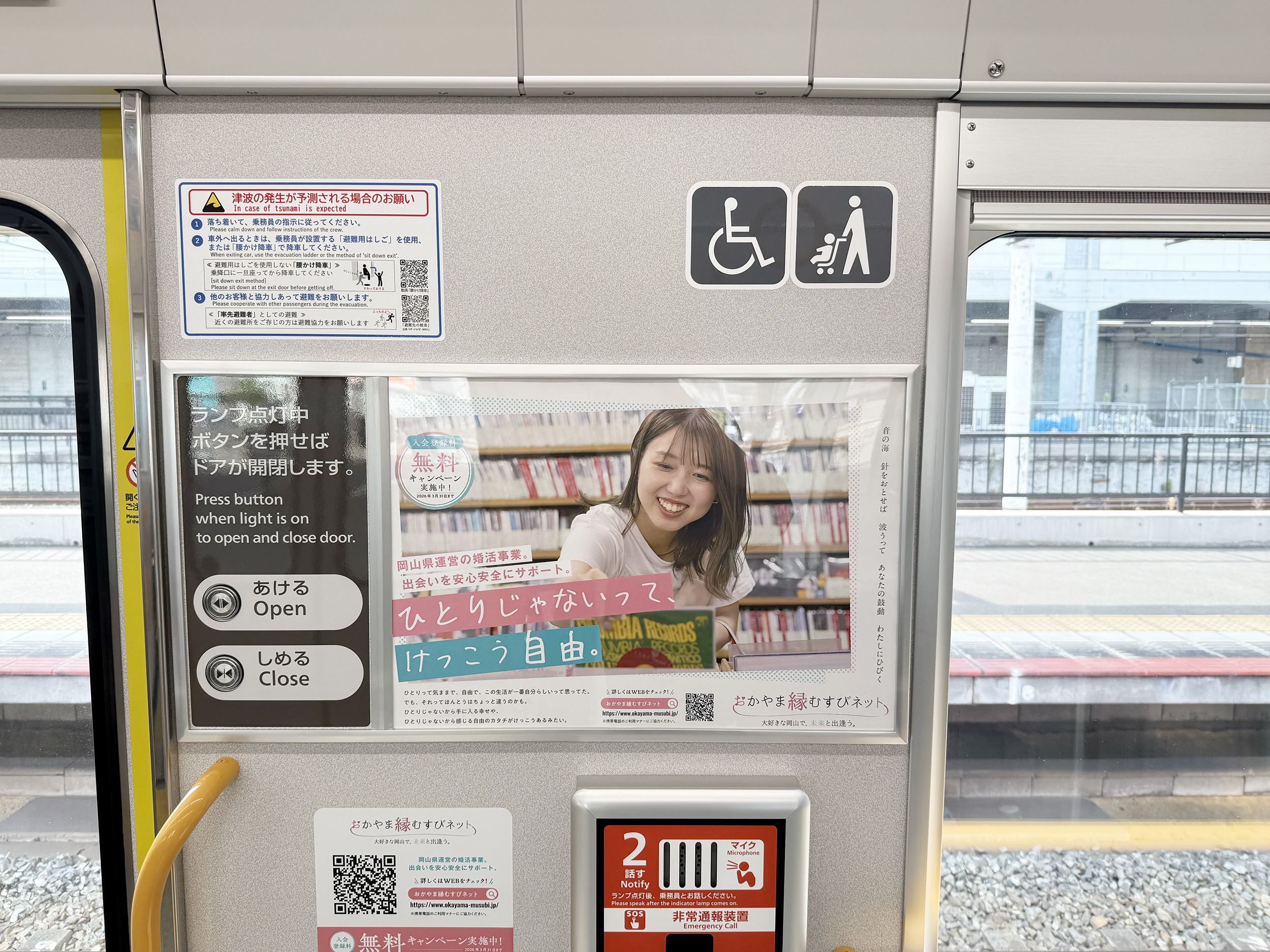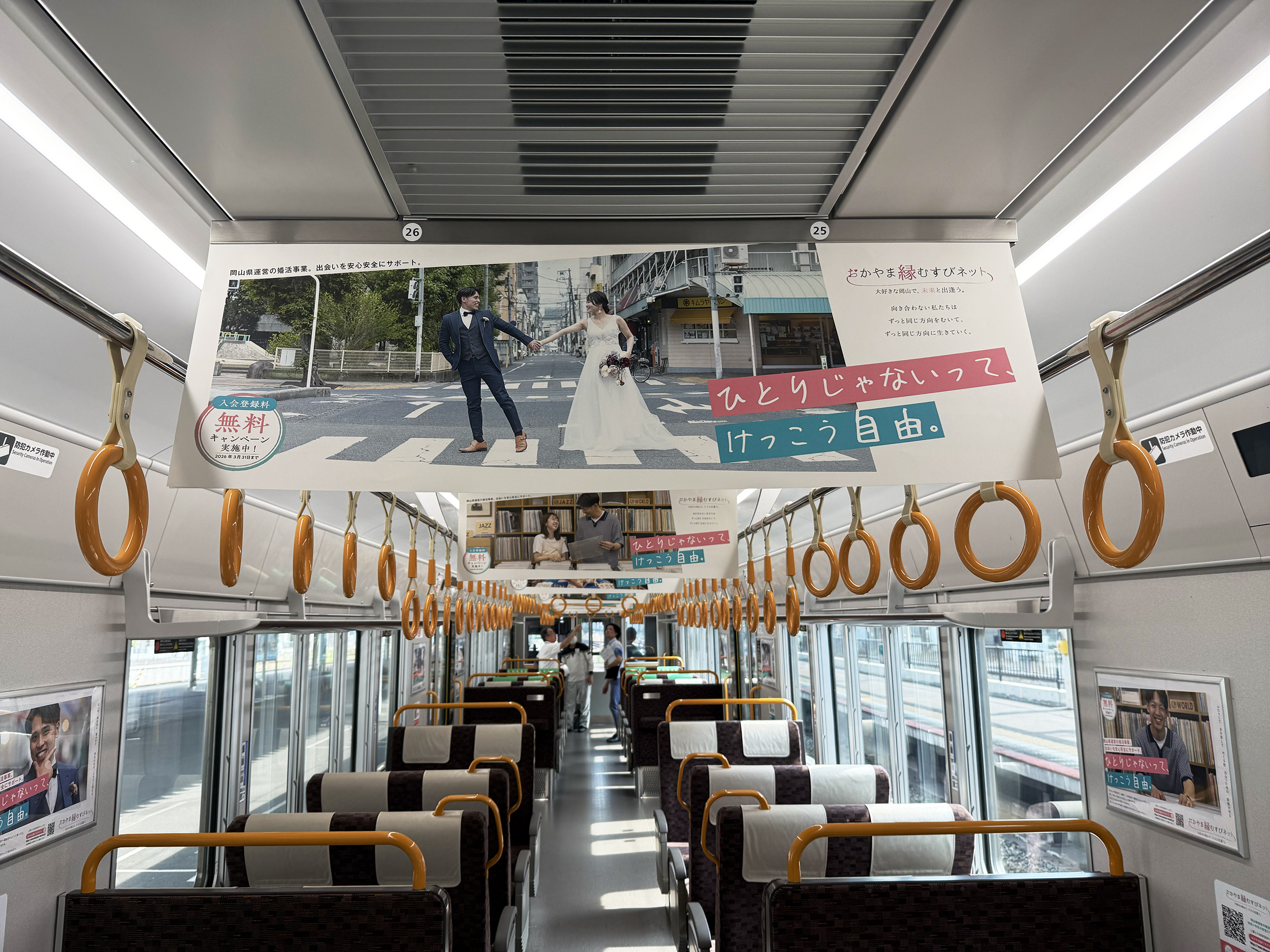 岡山駅にてお披露目を行い、車内には中づり広告、壁面ポスター、ステッカーなど約40点の広告物を掲出しました。