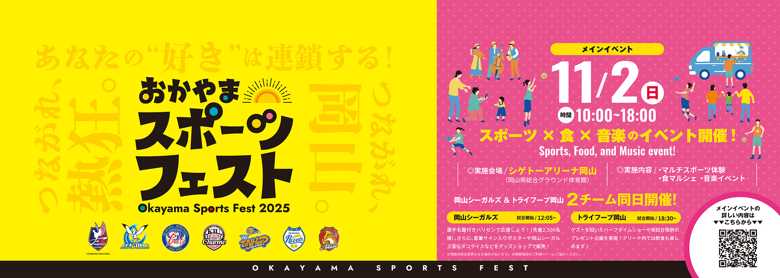 これまで「県民応援デー」として実施してきた県内トップクラブによる応援イベントを、今年度より「おかやまスポーツフェスト」としてリブランディング。