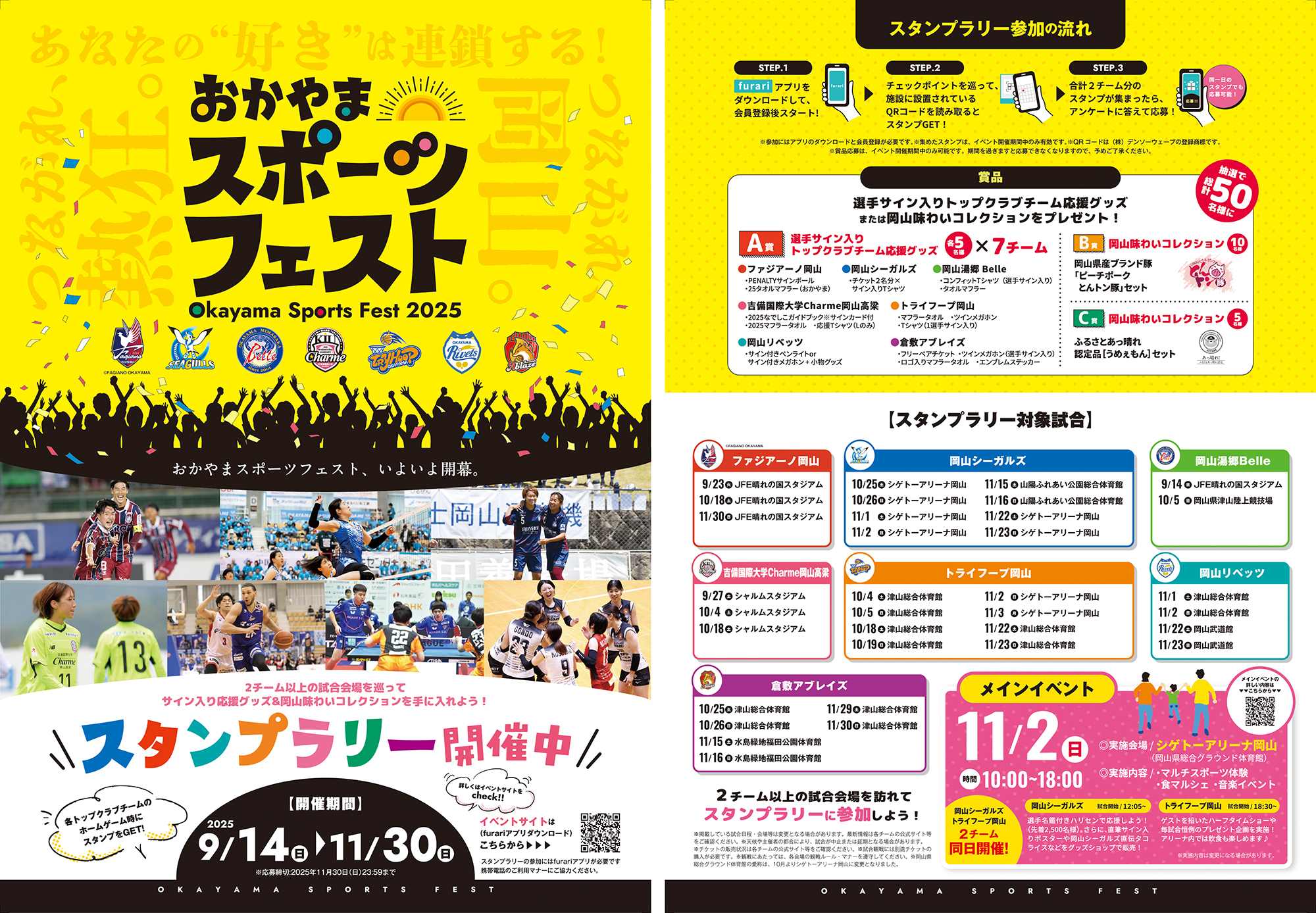 11月2日、岡山市北区のシゲトーアリーナ岡山および周辺エリアにてメインイベントを開催。