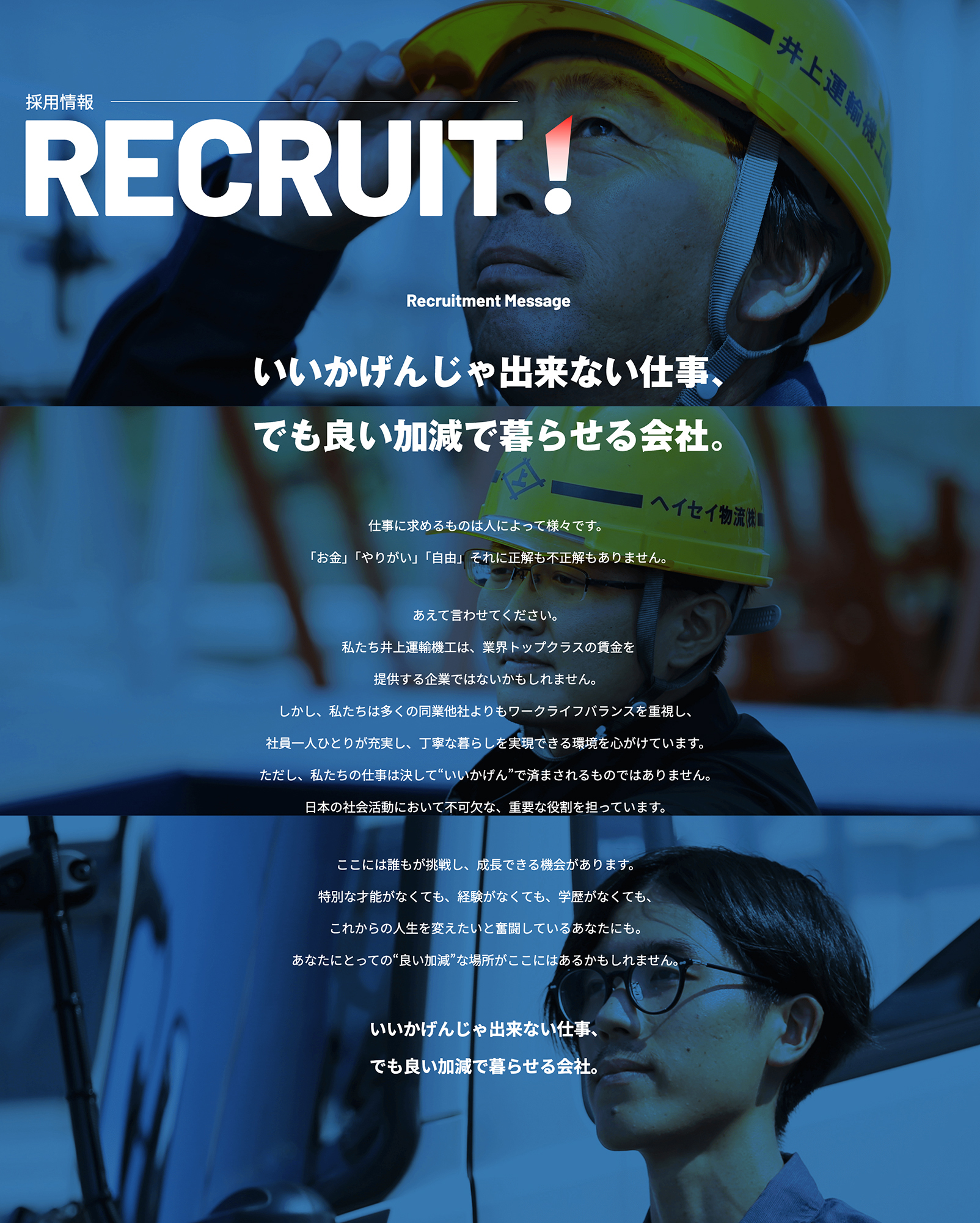 井上社長と綿密に打ち合わせを重ね、コーポレートメッセージと採用メッセージを明確に発信。そのメッセージに基づいたビジュアルやコンテンツを展開し、目的に沿ったWebサイトリニューアルを実現しました。