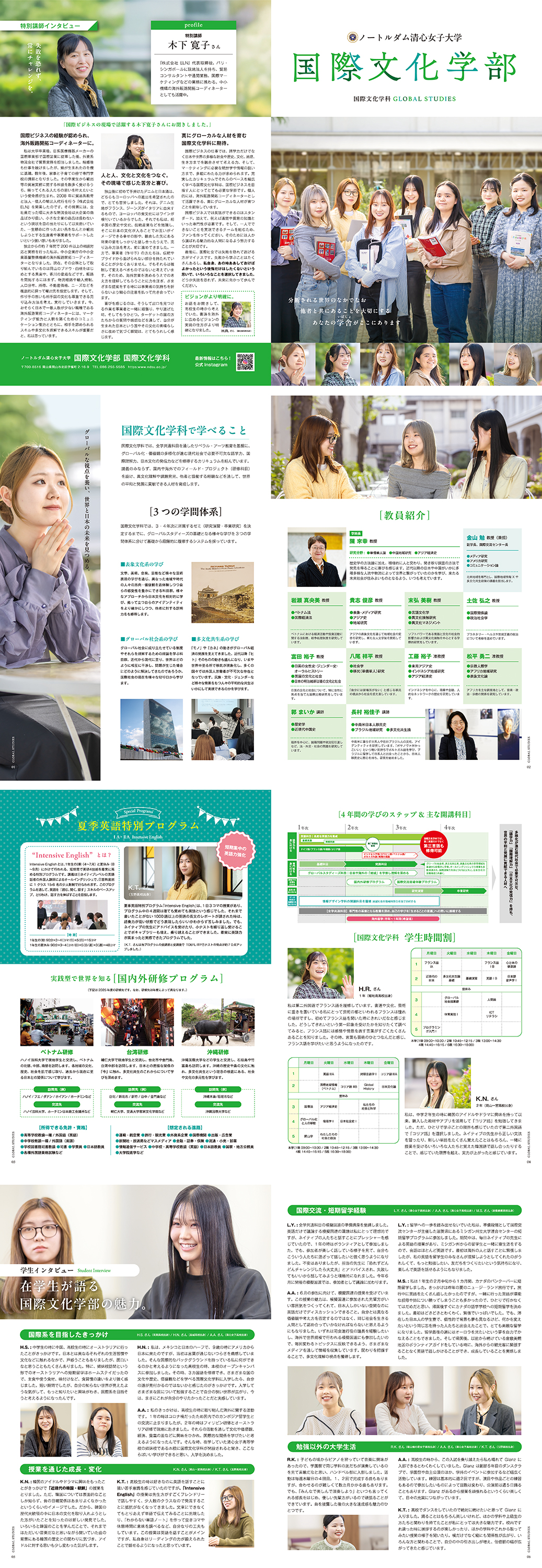 ノートルダム清心女子大学に、2024年度より新設された国際文化学部の学校案内をデザインしました。